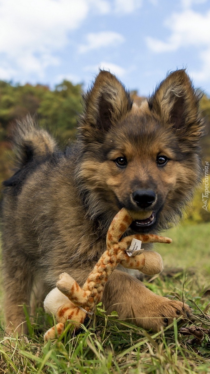 Edytor tapety: Zabawa szczeniaczka na łące