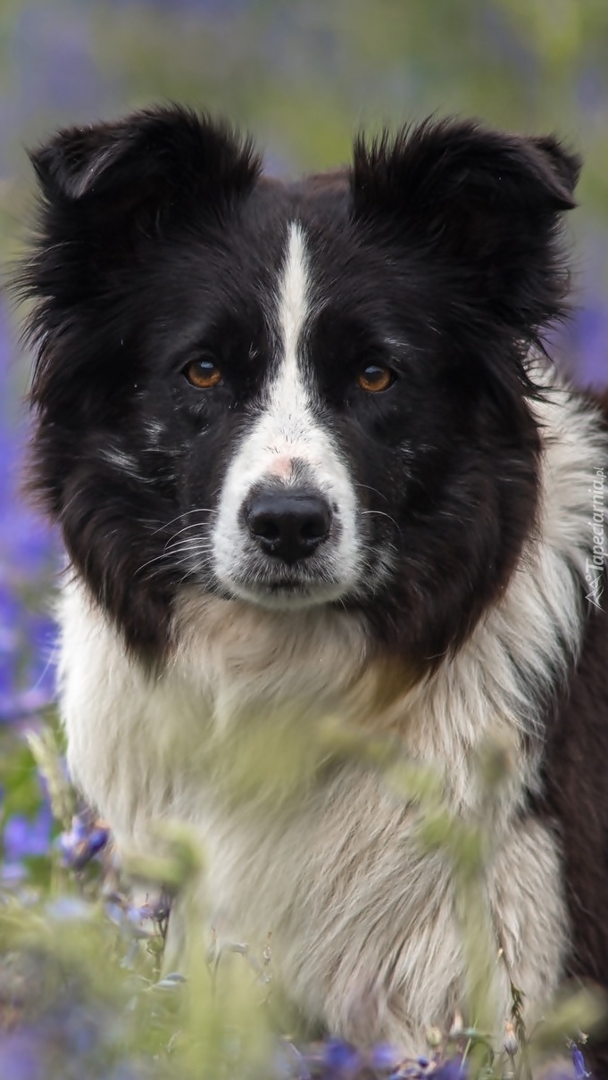 Edytor tapety: Spojrzenie biało-czarnego psa border collie