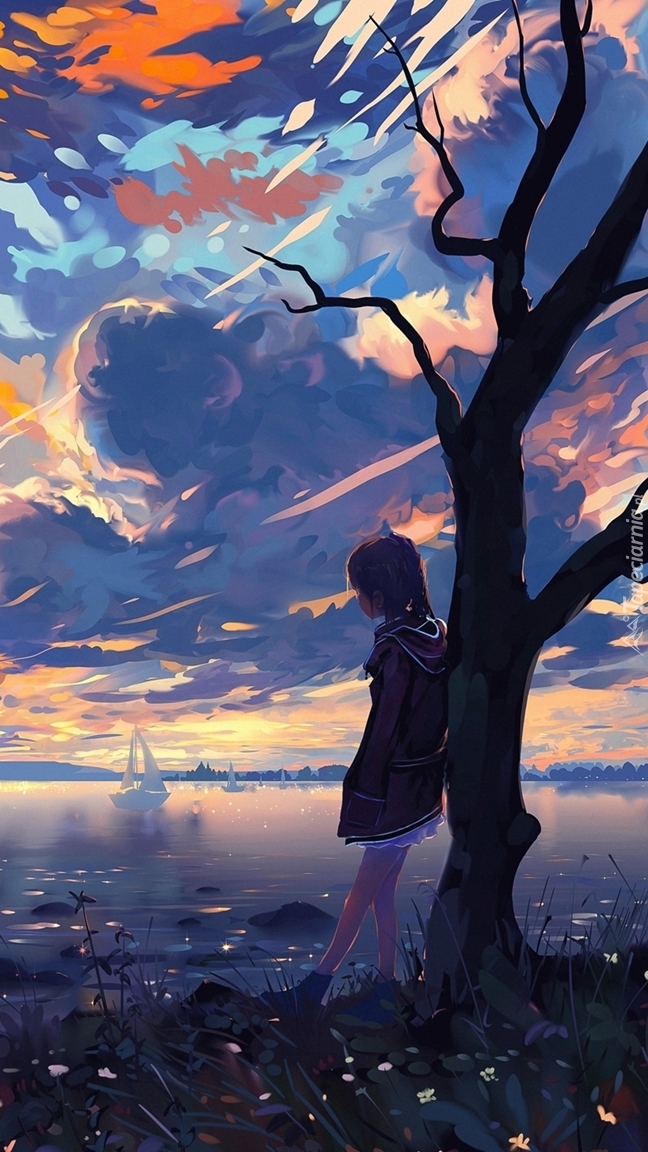 Edytor tapety: Dziewczyna pod drzewem