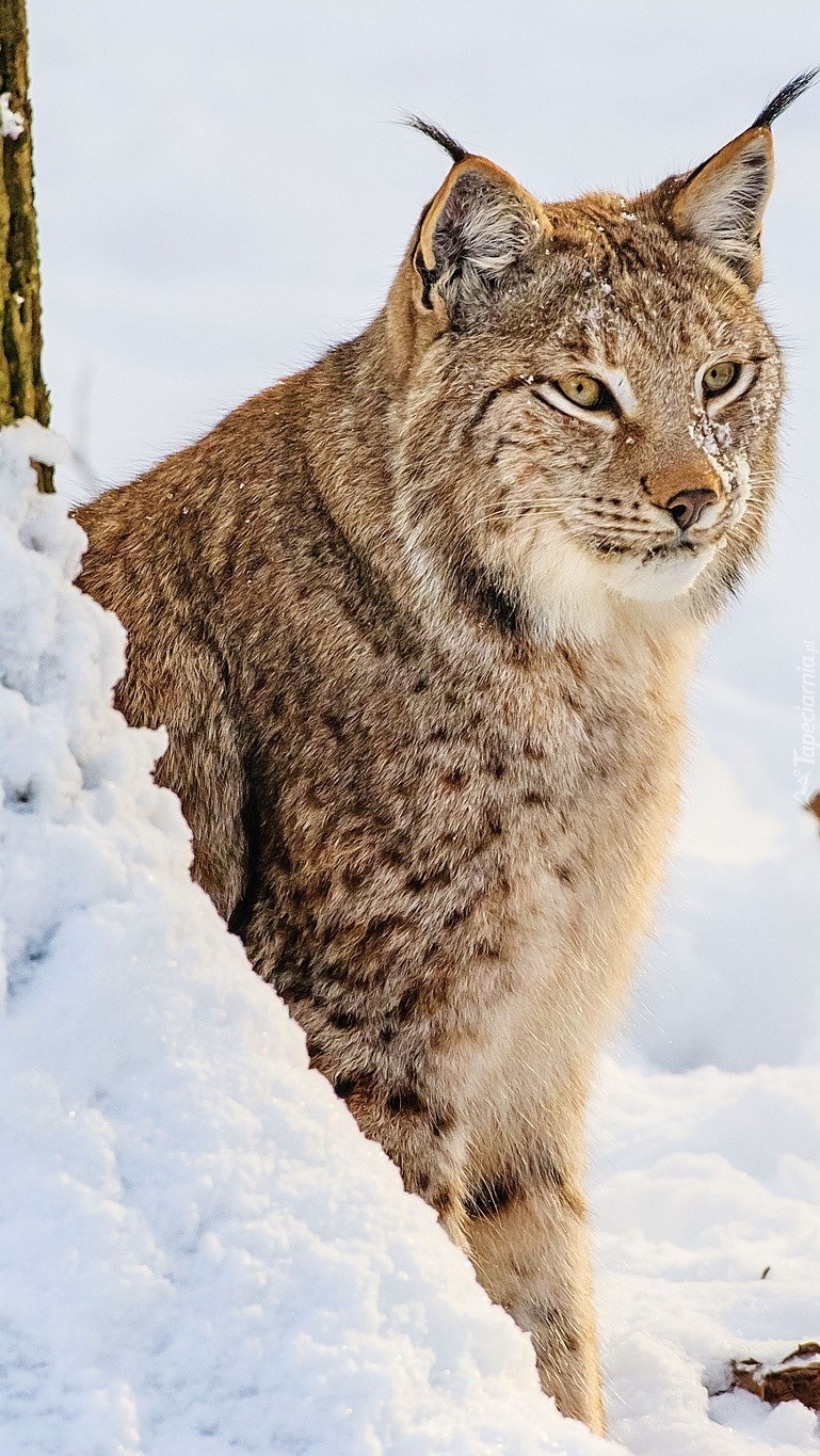 Edytor tapety: Zapatrzony ryś zimową porą