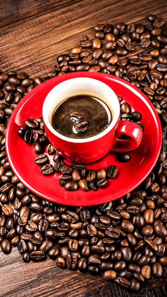 Edytor tapety: Filiżanka z kawą na ziarnistym sercu