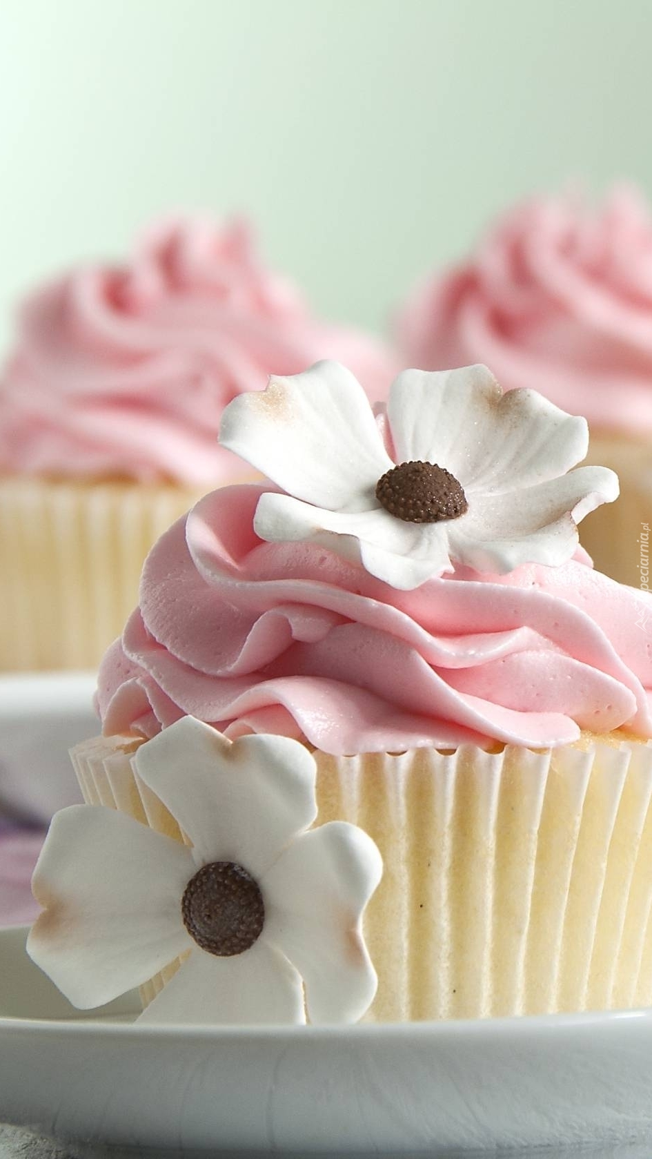 Edytor tapety: Lukrowe kwiatki na kremowych babeczkach