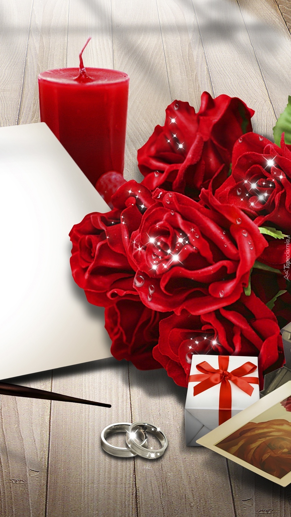 Edytor tapety: Obrączki z różami i świecą