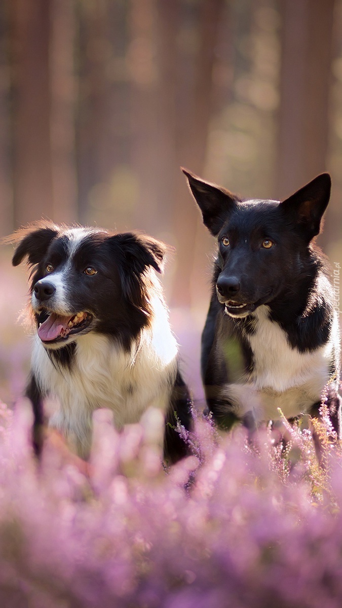 Edytor tapety: Dwa border collie we wrzosie