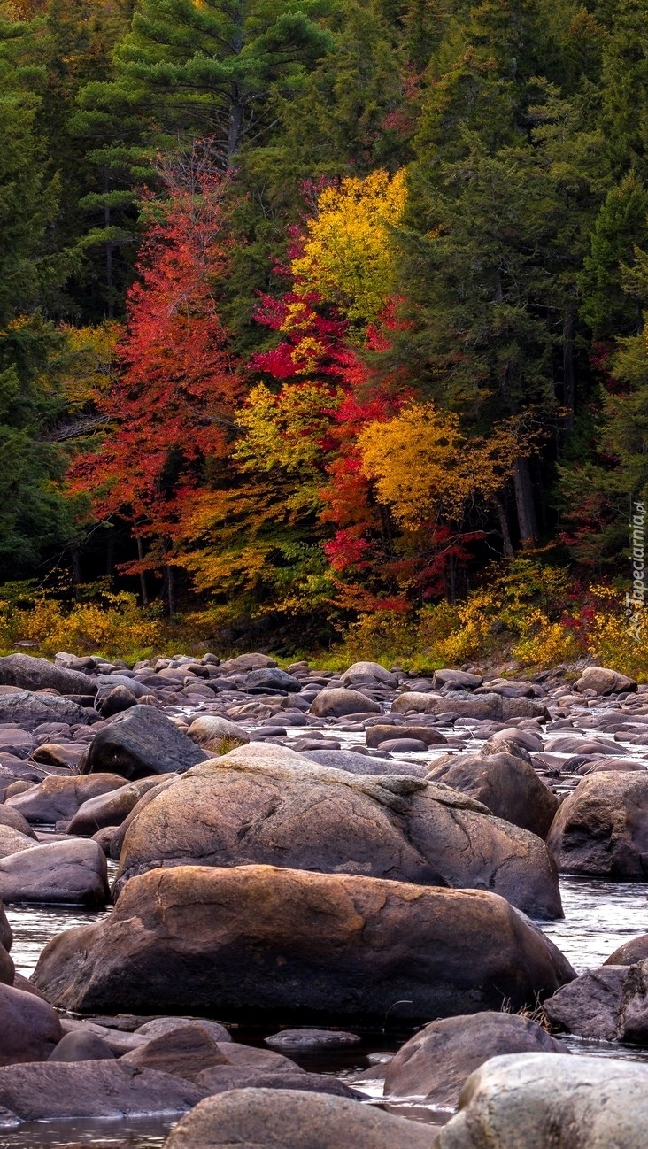 Edytor tapety: Jesienny las nad kamienistą rzeką