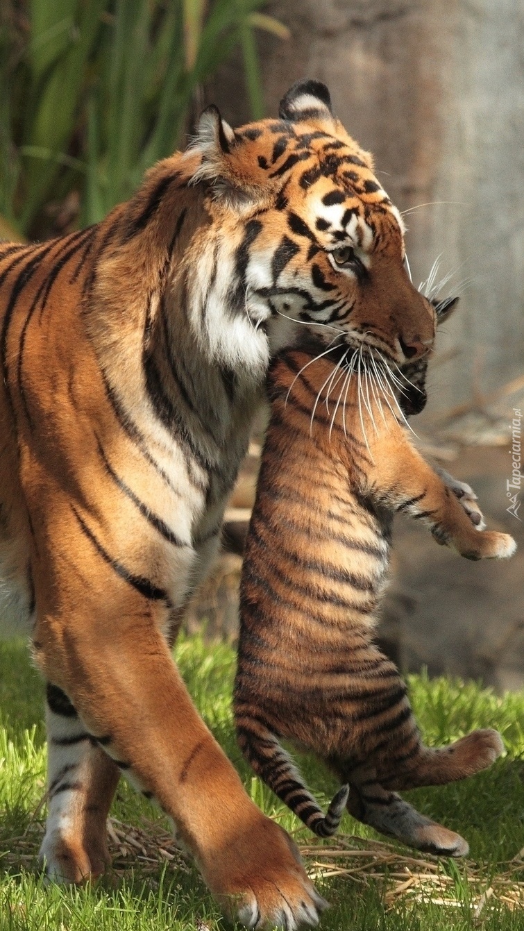 Edytor tapety: Tygrys z maleństwem w zębach