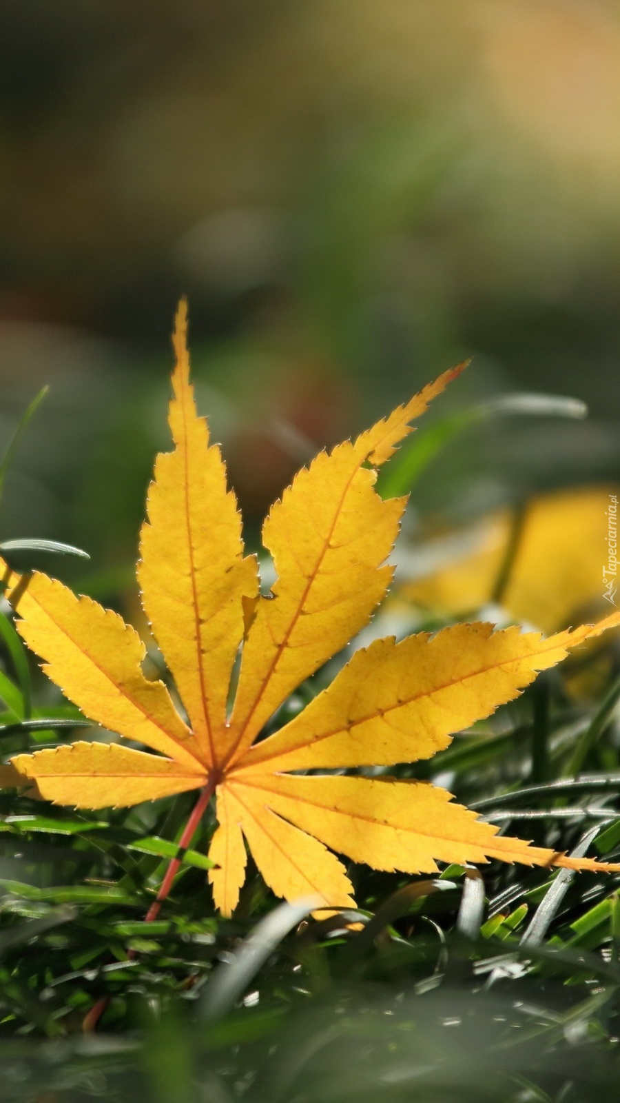 Edytor tapety: Żółty liść na trawie