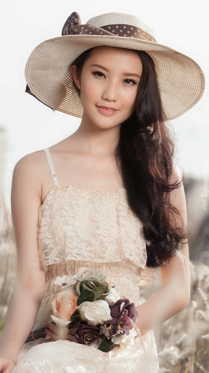 Edytor tapety: Kobieta z pękiem róż