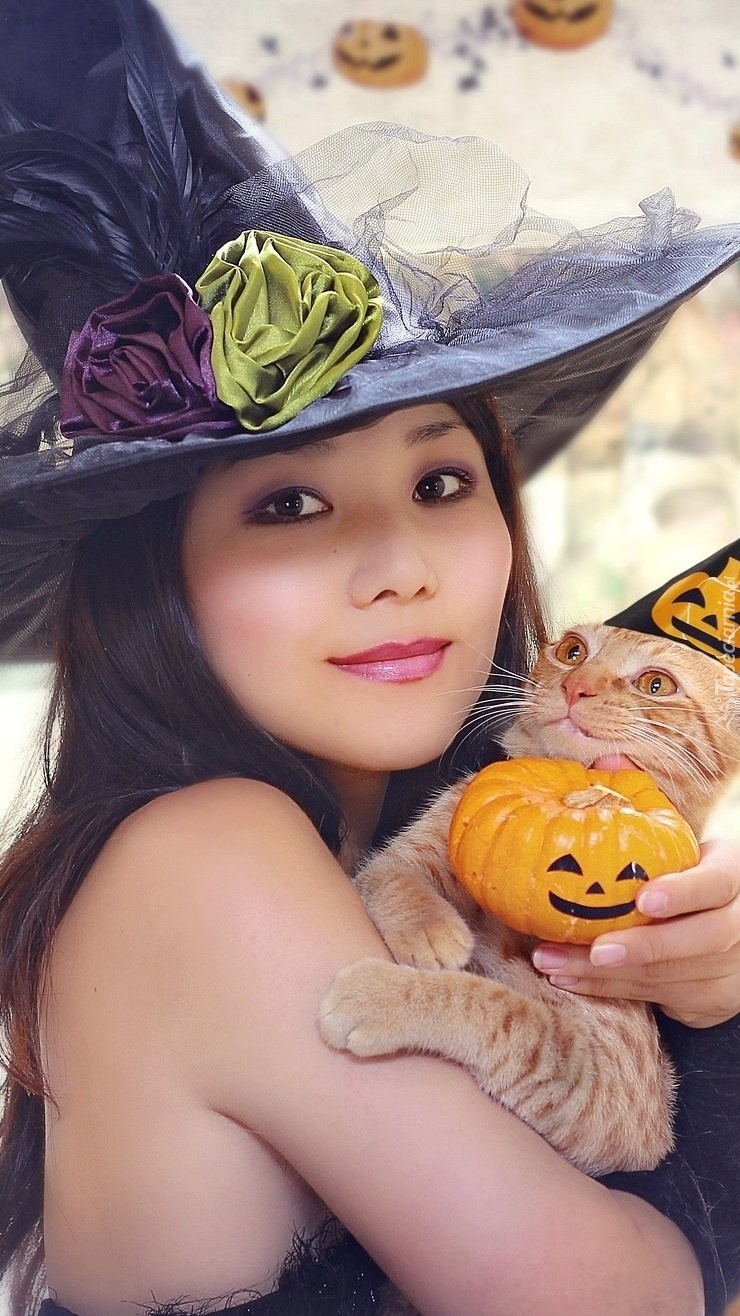 Edytor tapety: Czarownica z kotem