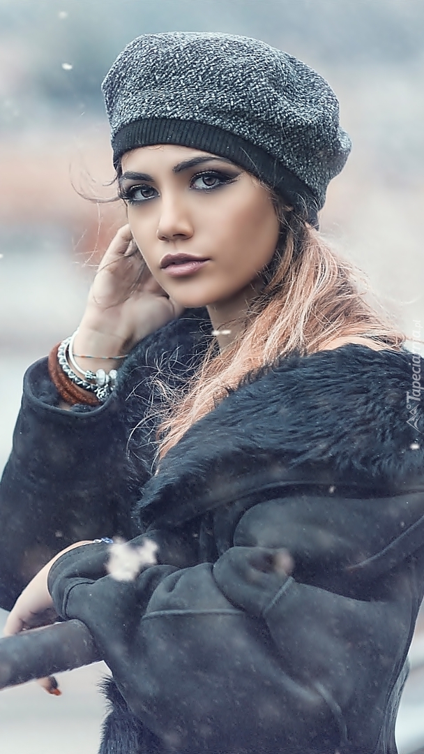 Edytor tapety: Blondynka w czapce zimą