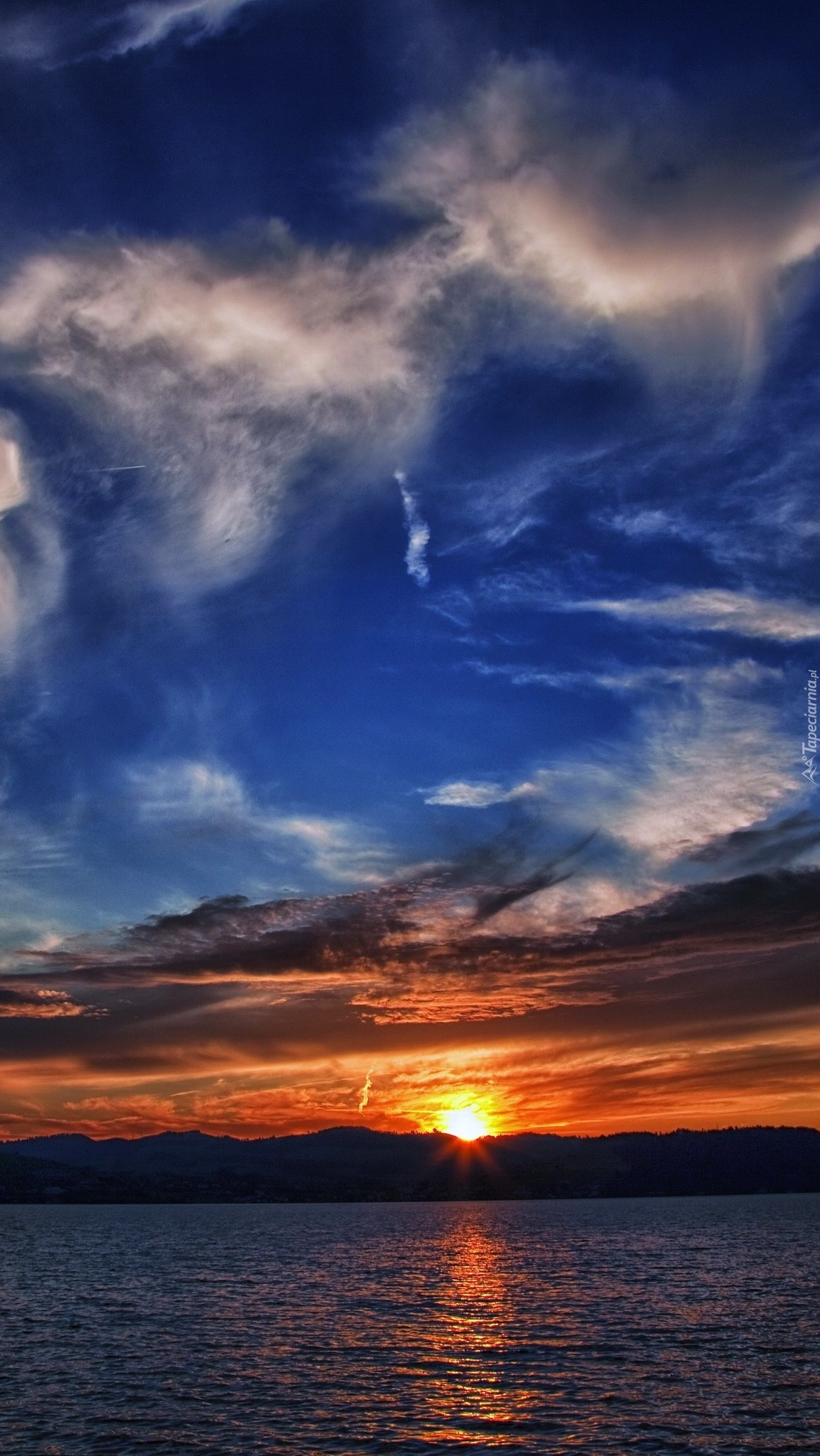 Edytor tapety: Zachodzące słońce nad jeziorem