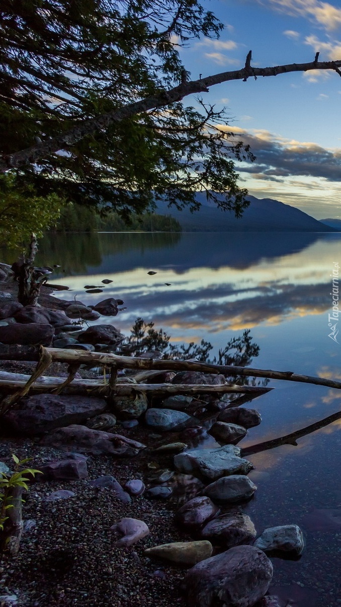 Edytor tapety: Połamane gałęzie na brzegu jeziora