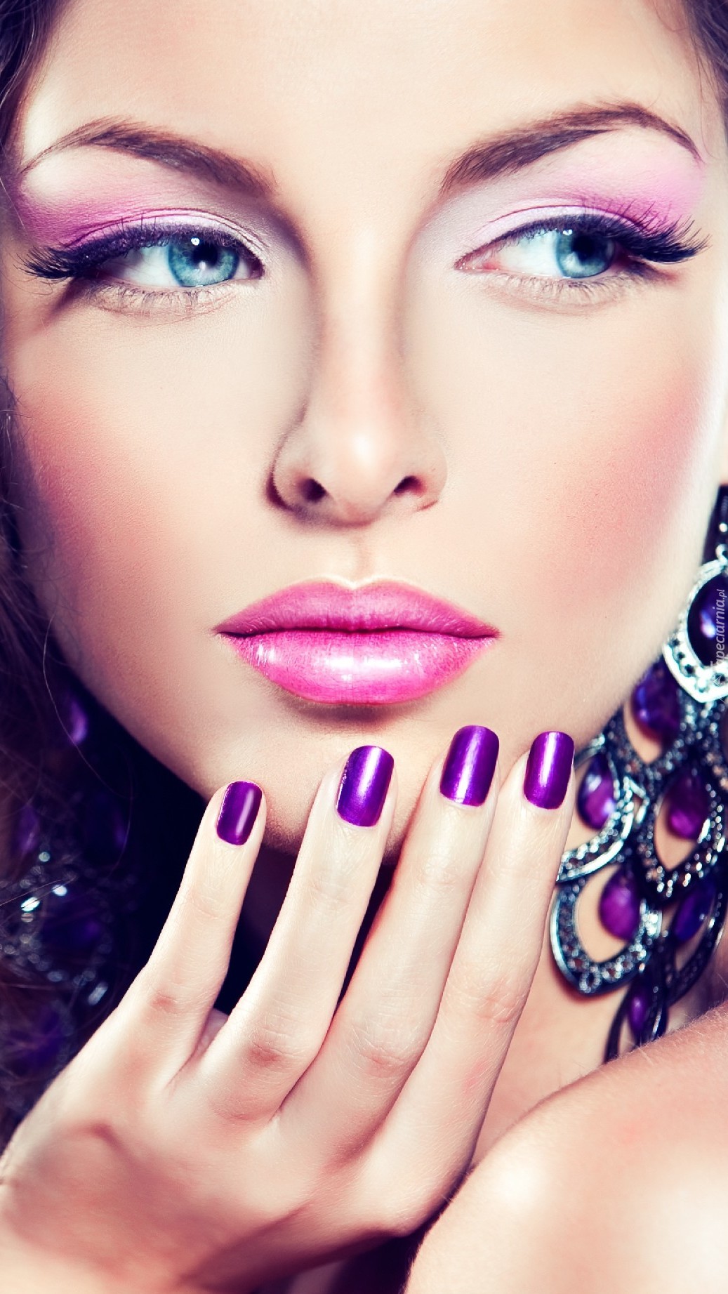 Edytor tapety: Kobieta w makijażu i kolczykach
