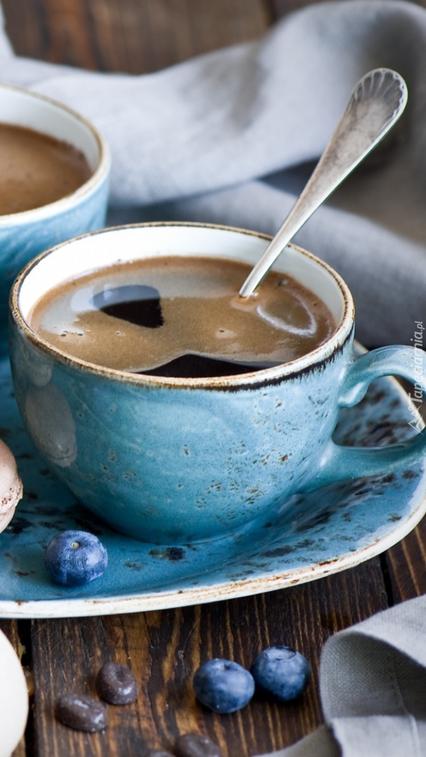Edytor tapety: Kawa w niebieskiej filiżance