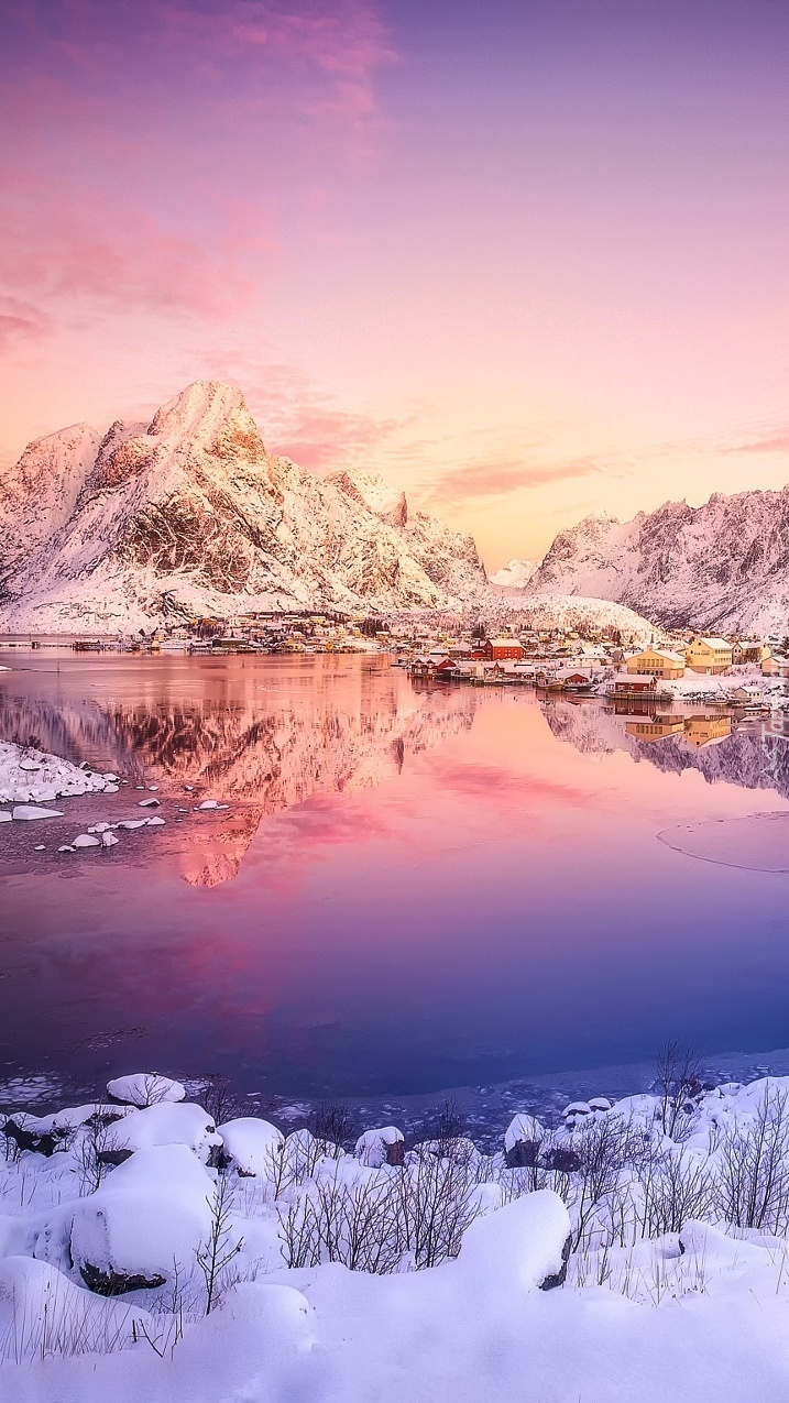Edytor tapety: Norweska wioska nad zatoką zimą