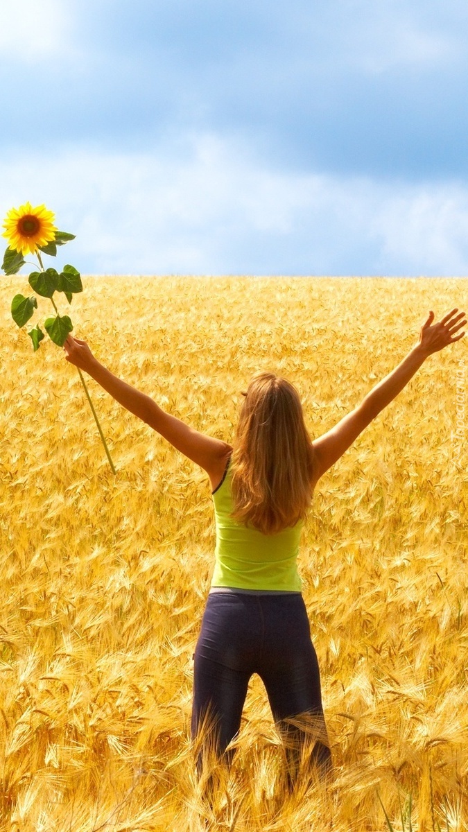 Edytor tapety: Dziewczyna z słonecznikiem w zbożu
