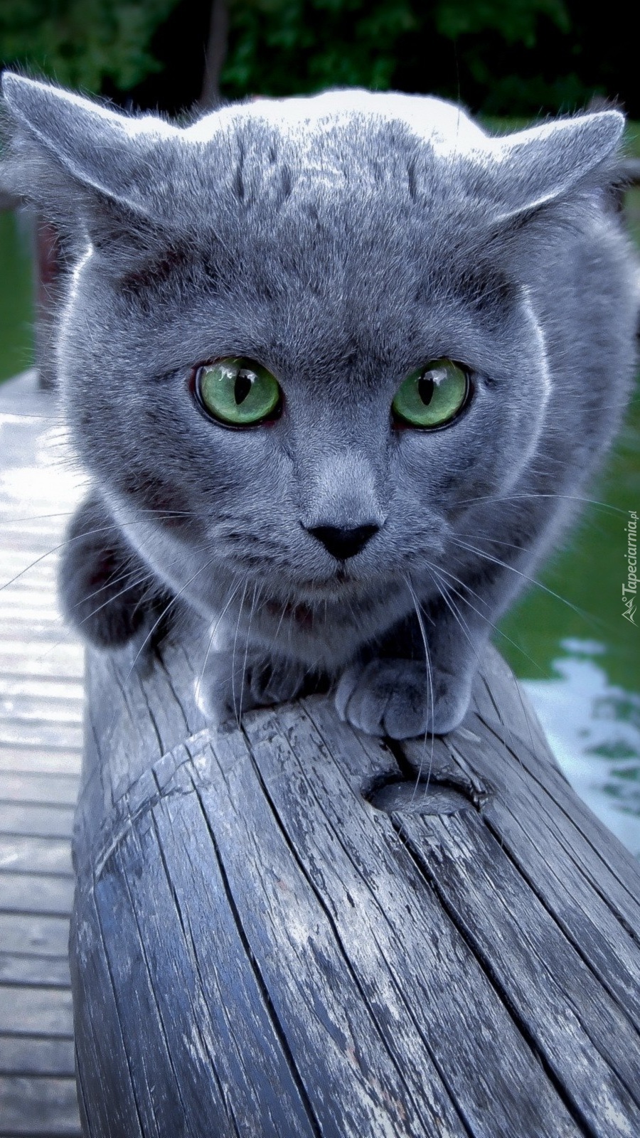 Edytor tapety: Kot brytyjski na drewnianym moście