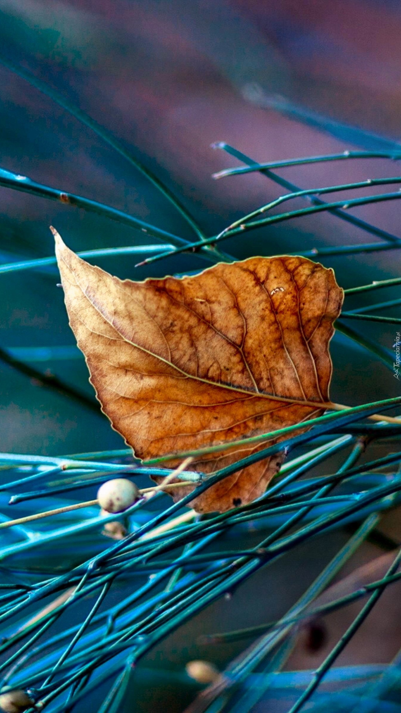 Edytor tapety: Suchy liść spadł na gałązkę