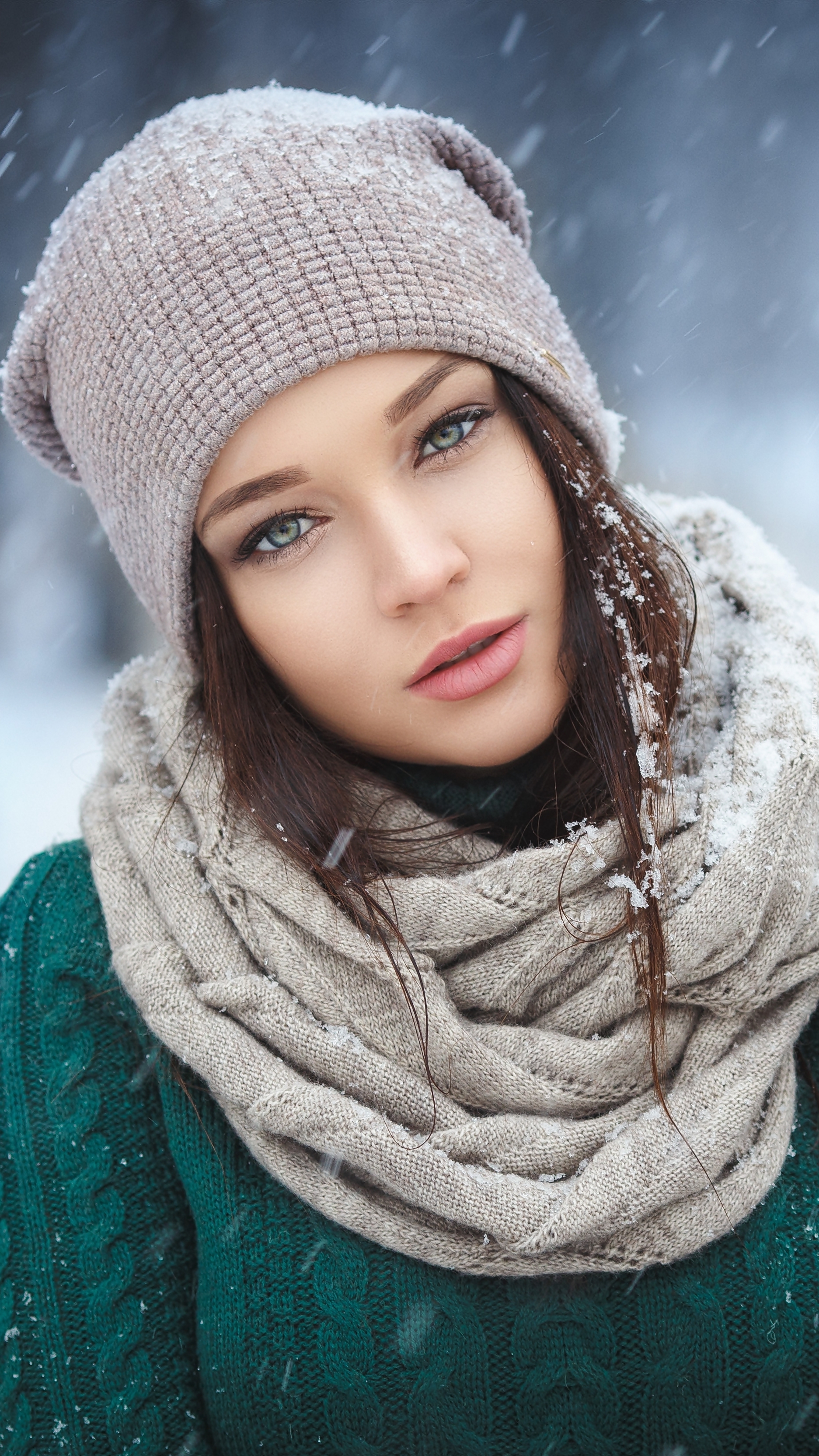 Edytor tapety: Angelina Petrova w czapce i szaliku