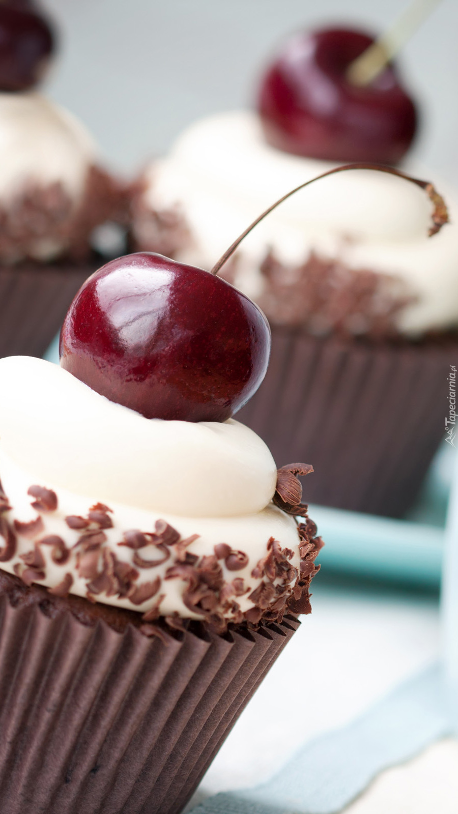 Edytor tapety: Kremowe babeczki z wiśniami