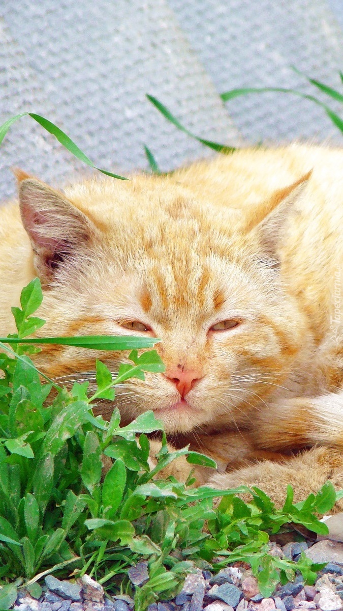 Edytor tapety: Śpiący rudy kotek