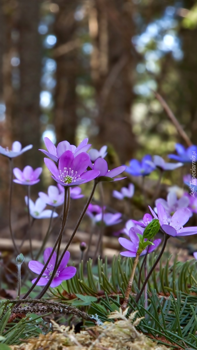 Edytor tapety: Przylaszczka pospolita w wiosennym lesie