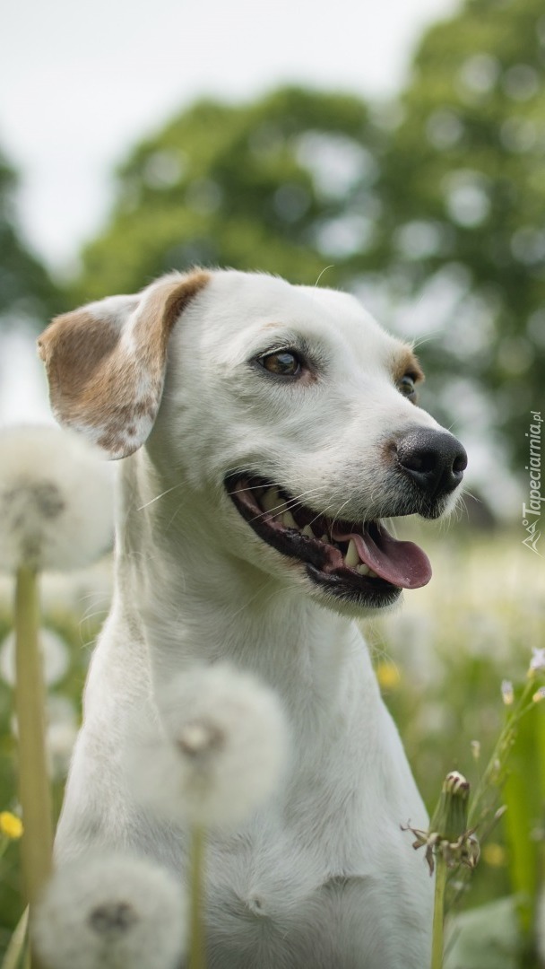 Edytor tapety: Labrador retriever wśród dmuchawców