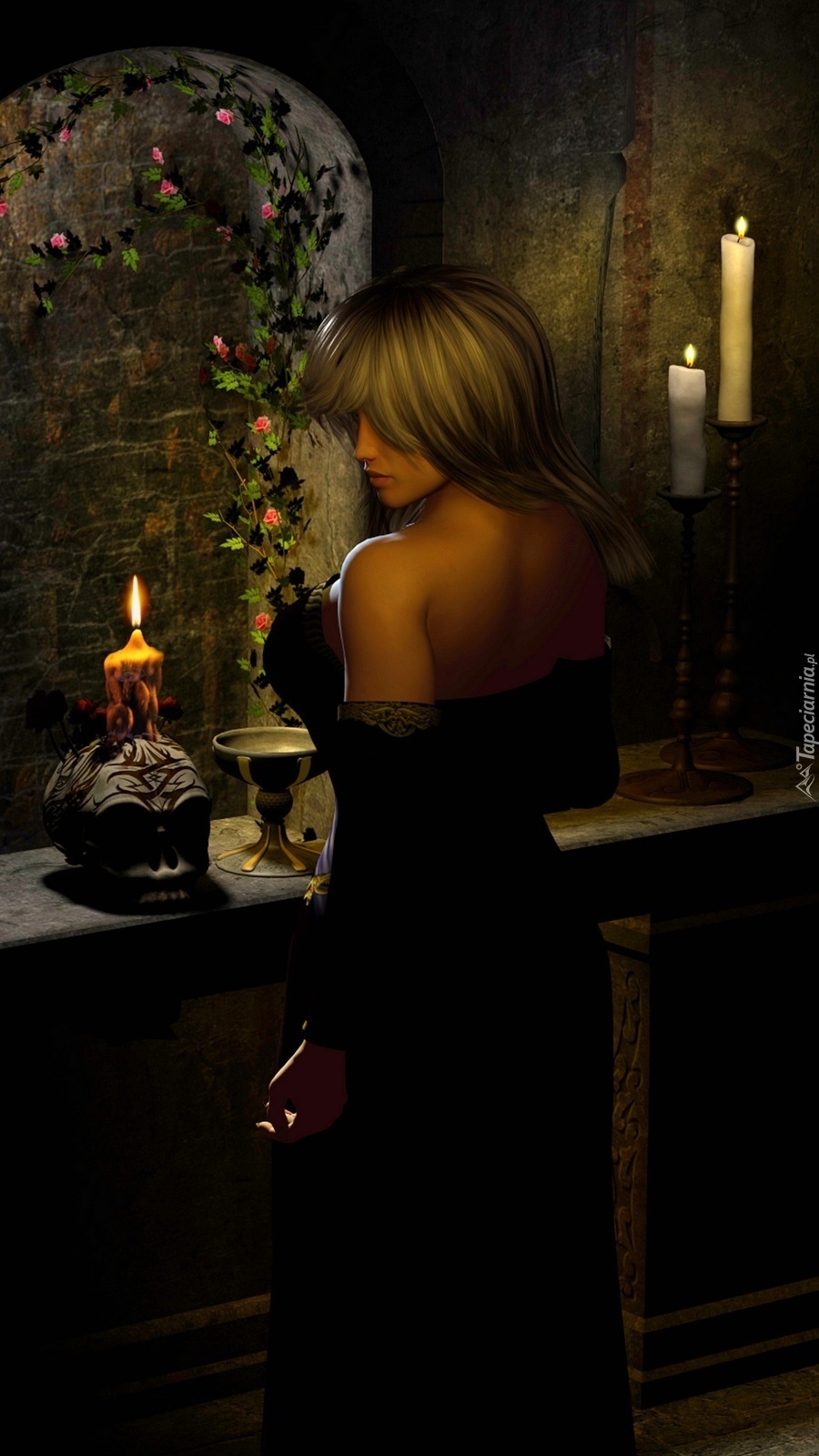 Edytor tapety: Kobieta w mrocznej scenerii
