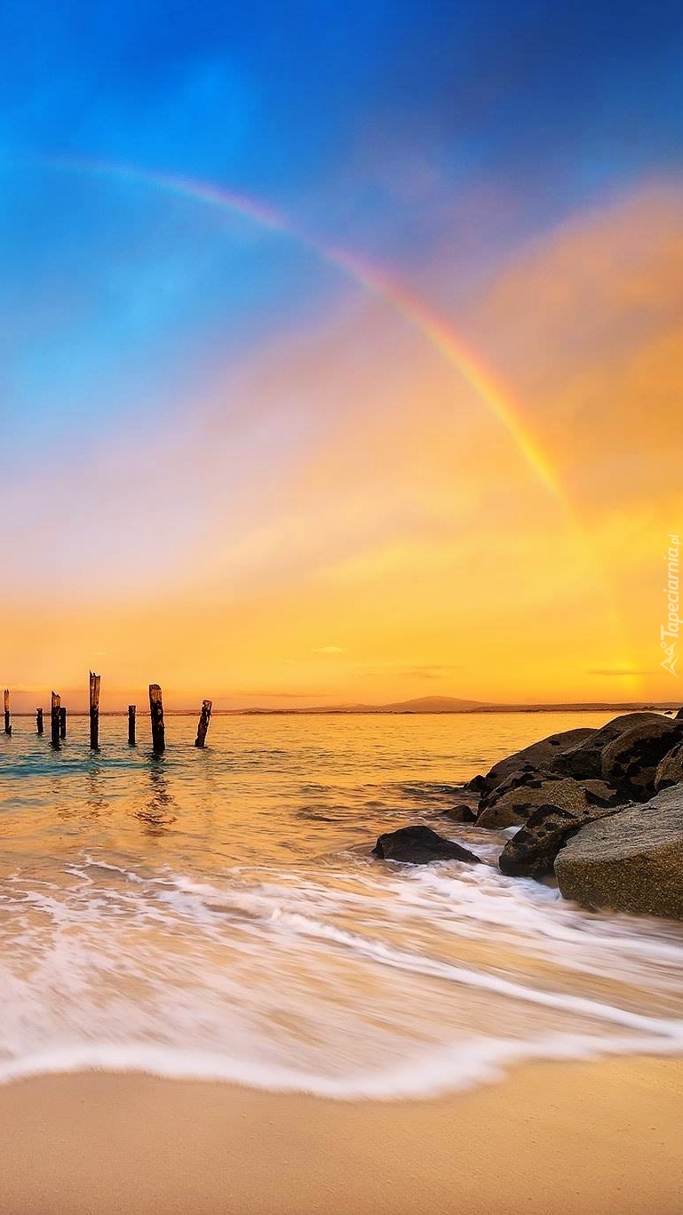 Edytor tapety: Tęcza nad morzem o zachodzie słońca