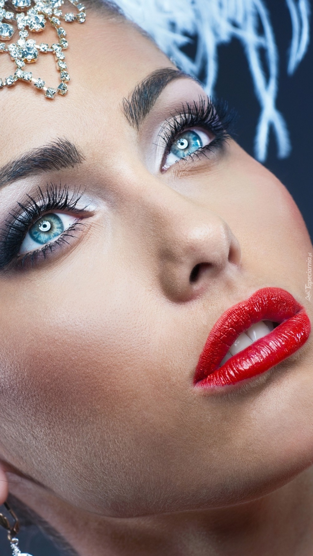 Edytor tapety: Niebieskooka z czerwonymi ustami