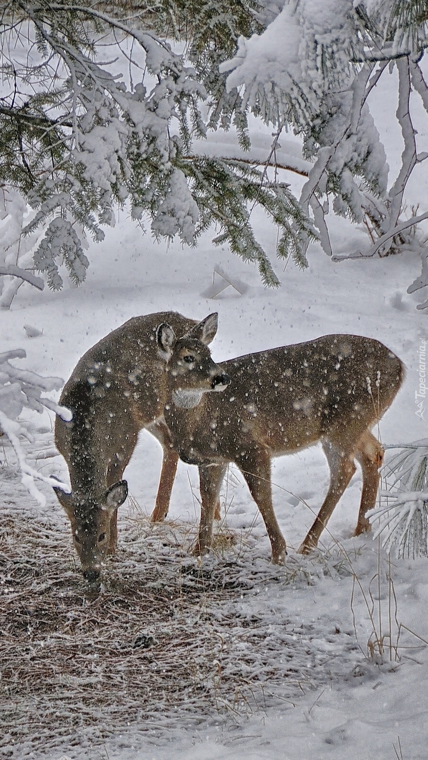 Edytor tapety: Dwie sarenki w zimowym lesie