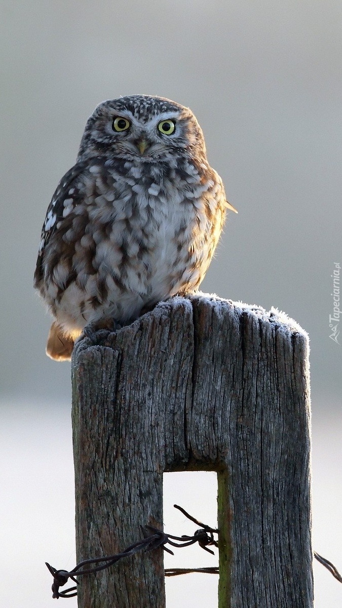 Edytor tapety: Sowa na kolczastym ogrodzeniu