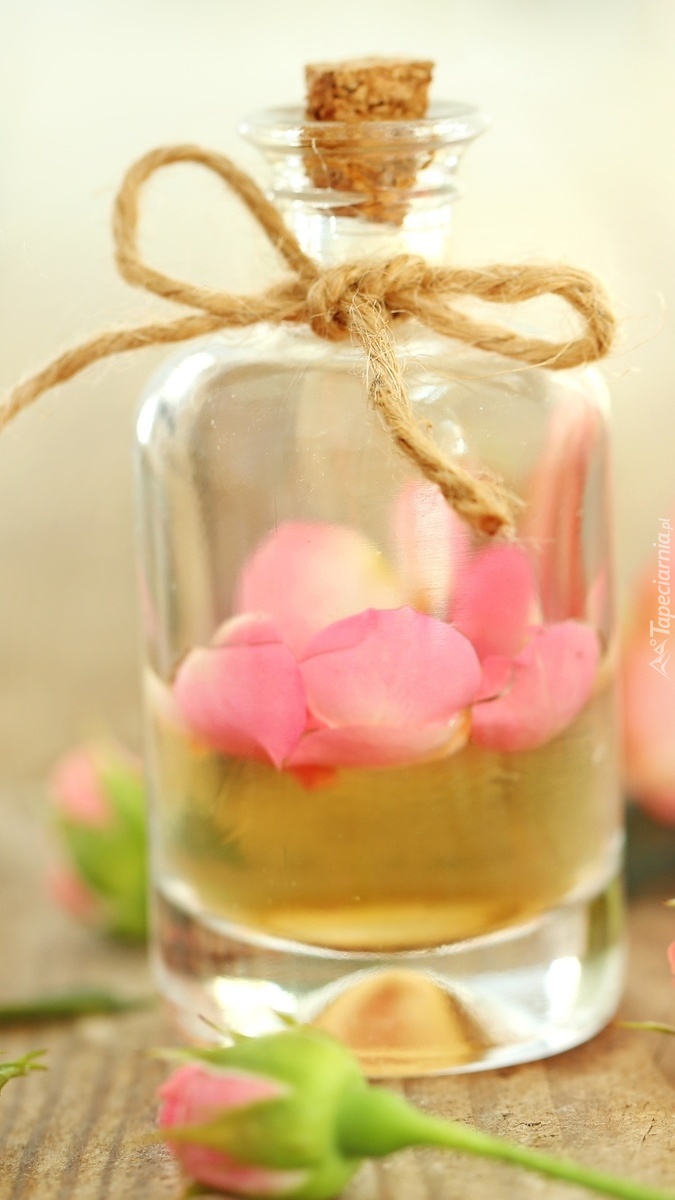 Edytor tapety: Płatki róży w butelce