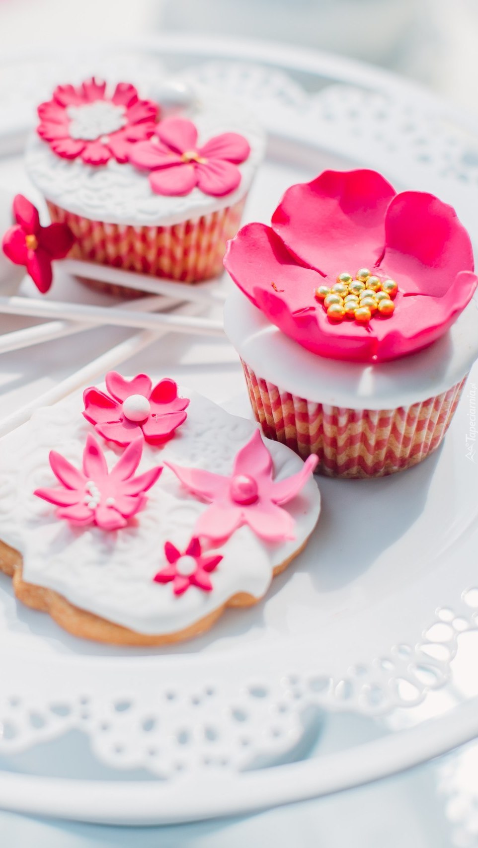 Edytor tapety: Kwiaty z lukru na babeczkach