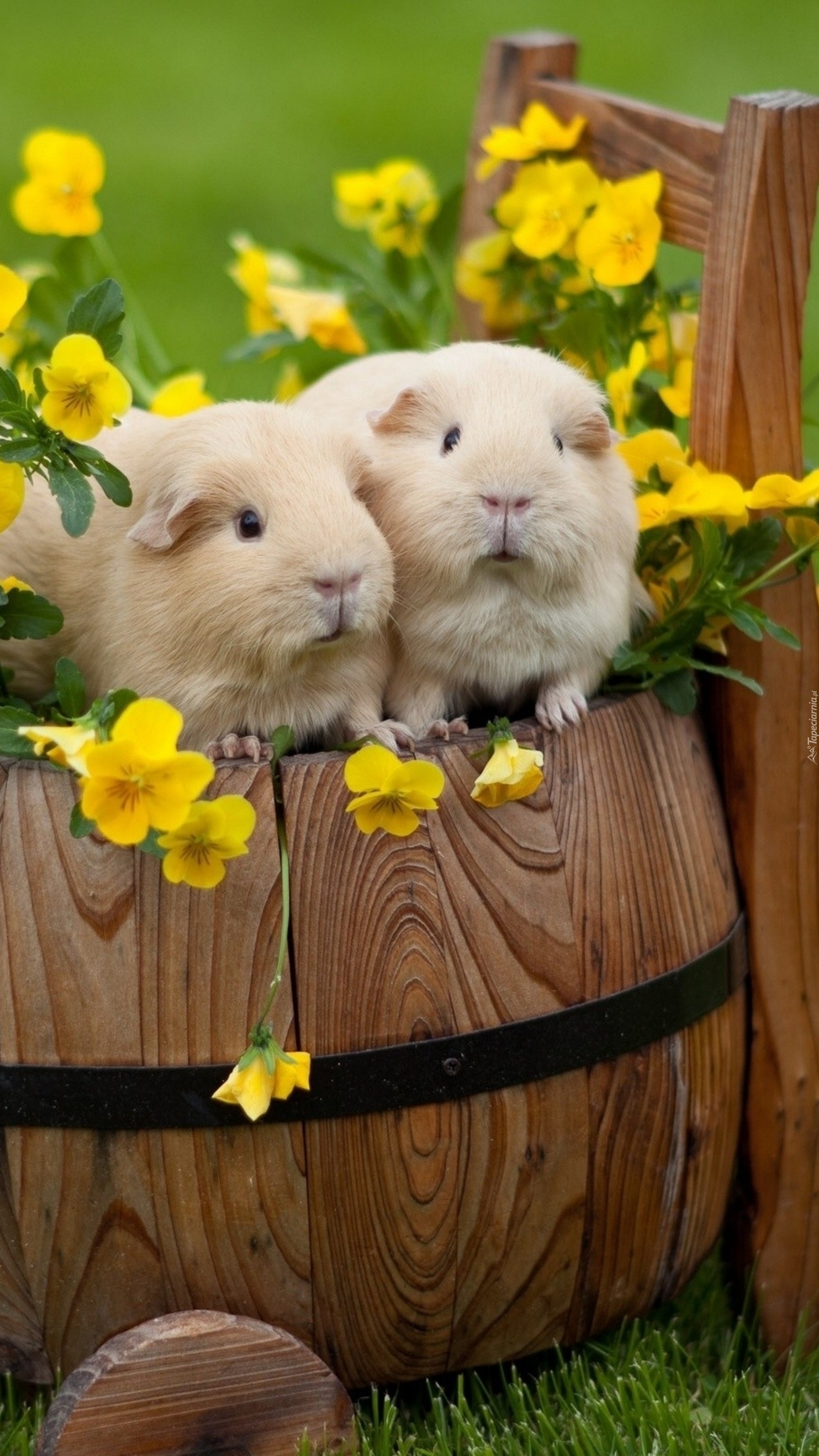 Edytor tapety: Świnki morskie w żółtych bratkach