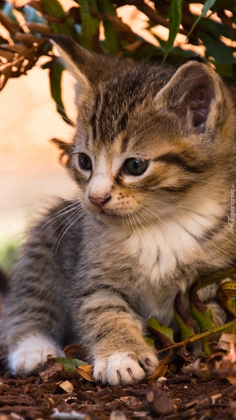 Edytor tapety: Kotek siedzi pod paprocią