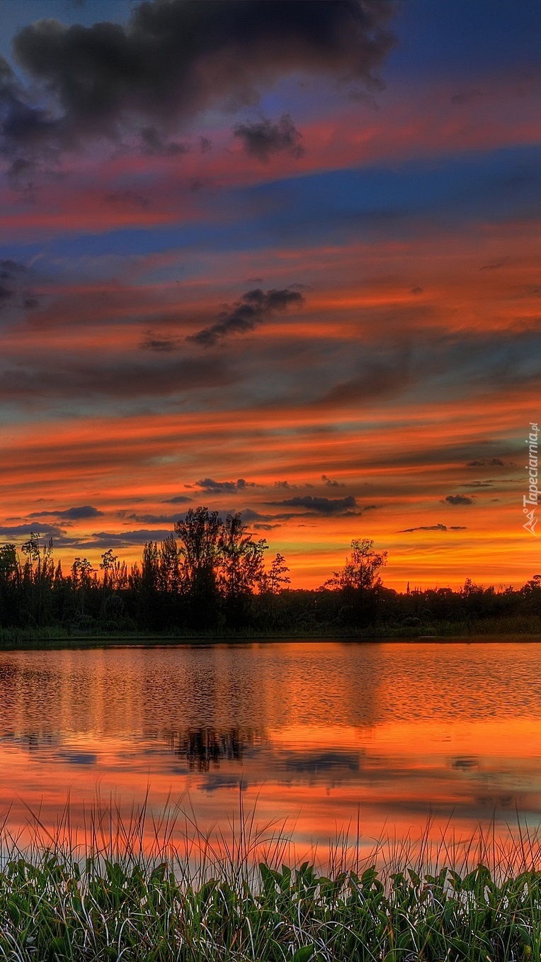 Edytor tapety: Ostatnie promienie słońca nad jeziorem