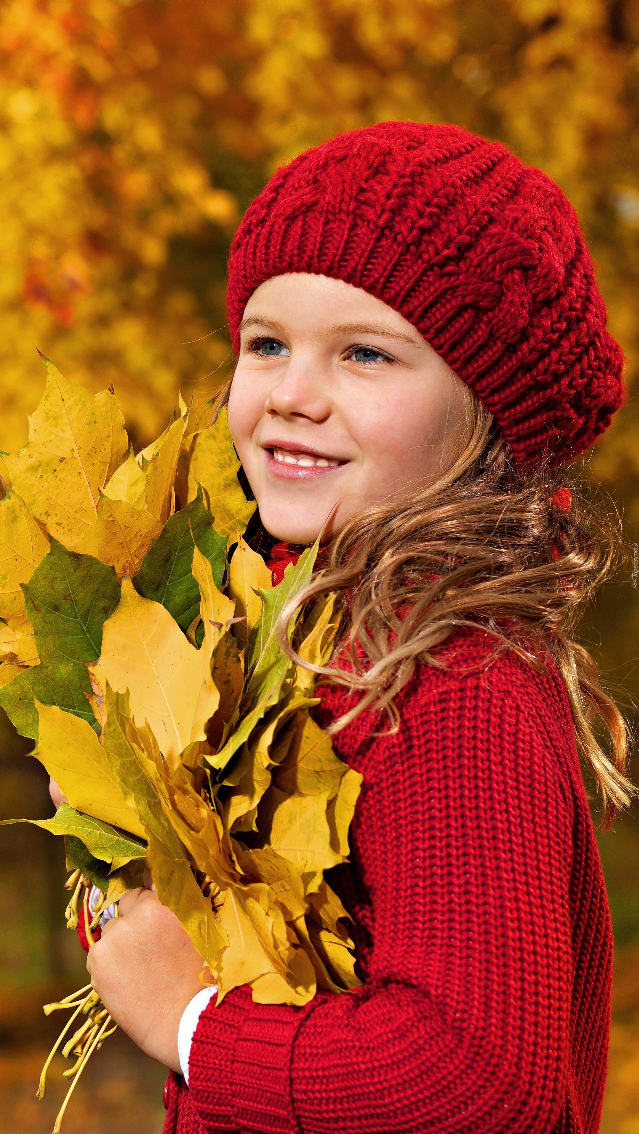 Edytor tapety: Dziewczynka z bukietem liści w parku