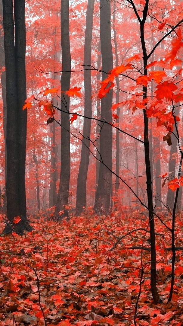 Edytor tapety: Czerwone jesienne liście w lesie