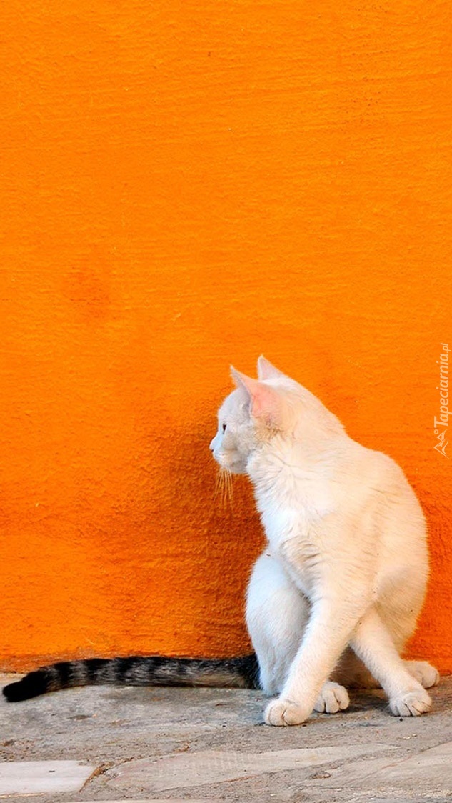 Edytor tapety: Biały kotek pod ścianą