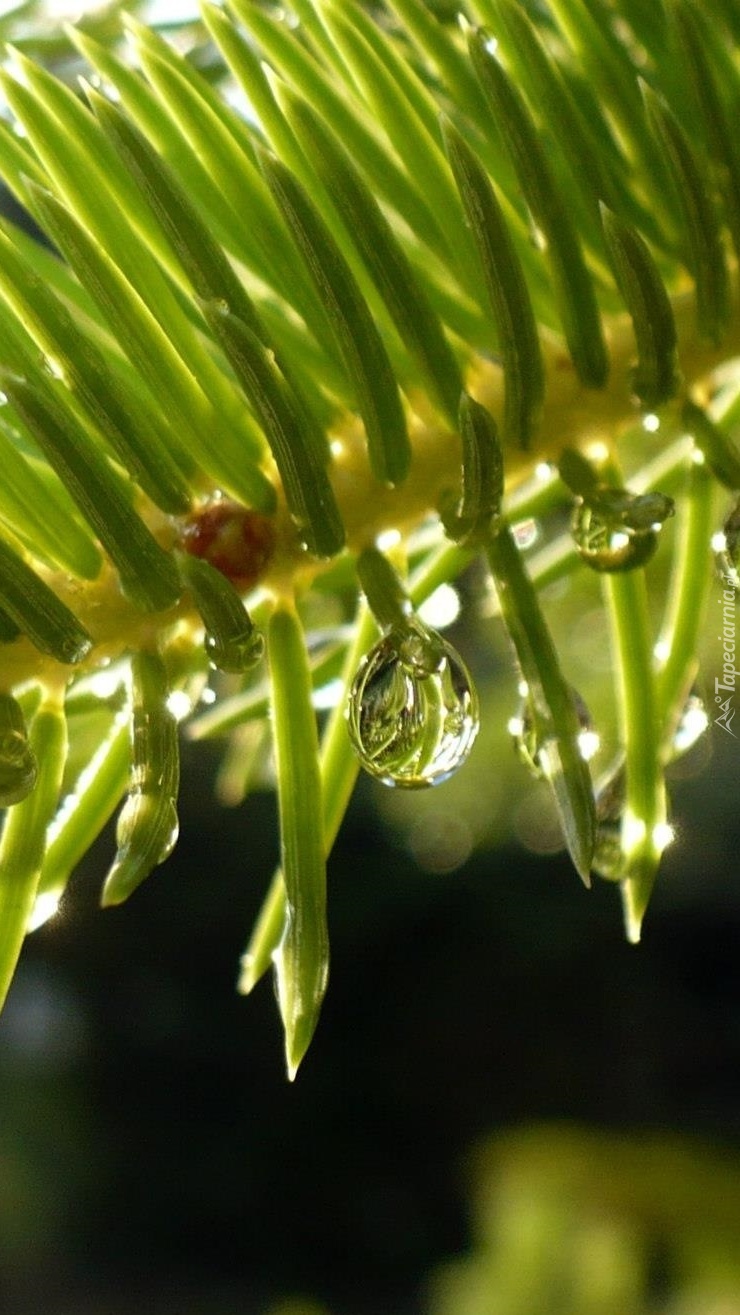 Edytor tapety: Kropelki na igłach świerku