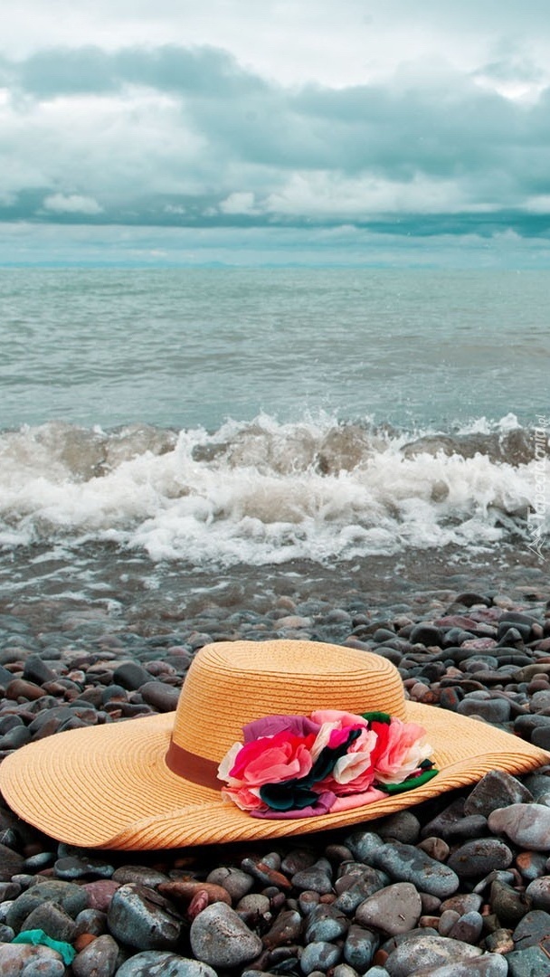 Edytor tapety: Kapelusz na kamienistym brzegu
