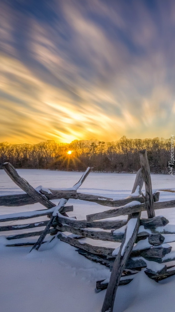 Edytor tapety: Słoneczny zachód w zaciszu drzew