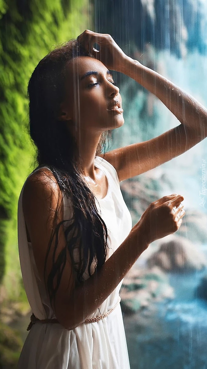 Edytor tapety: Brunetka w strugach wodospadu
