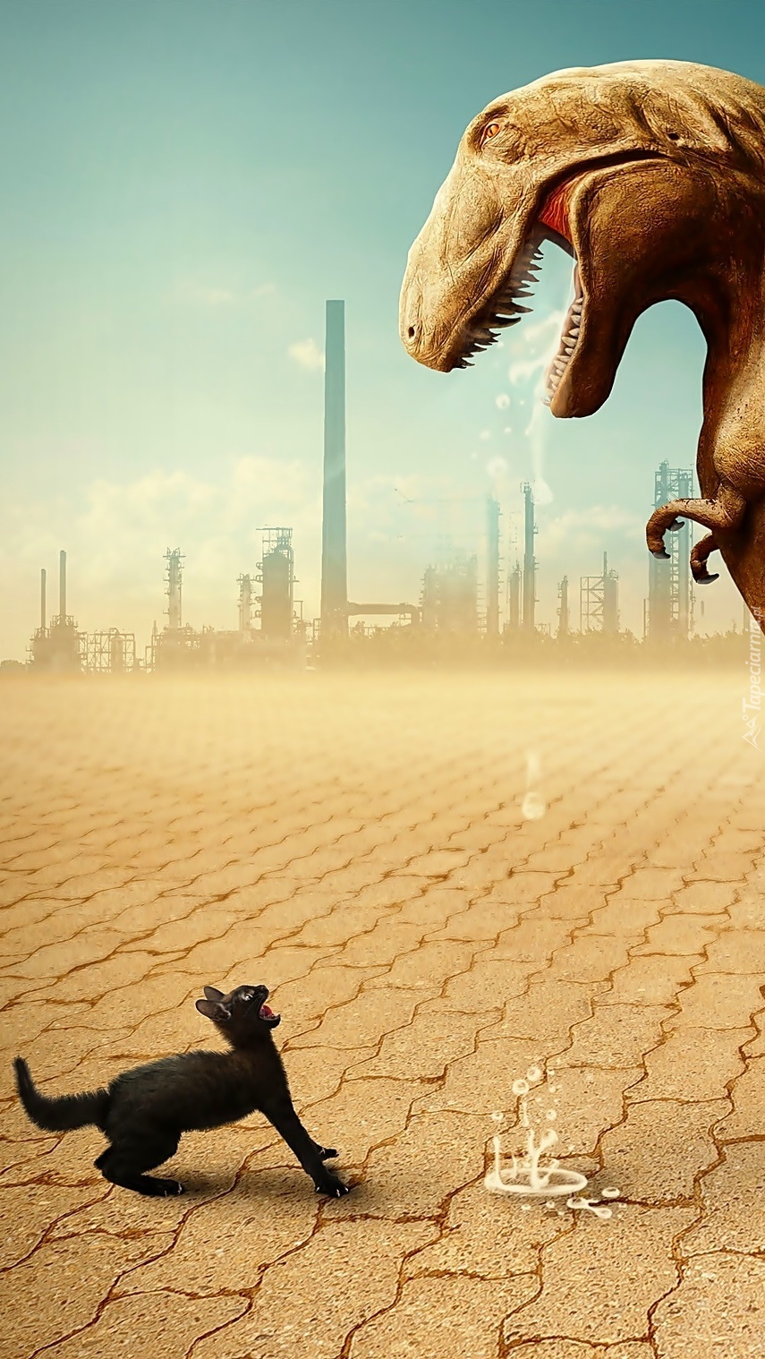 Edytor tapety: Rozmowa kota z dinozaurem