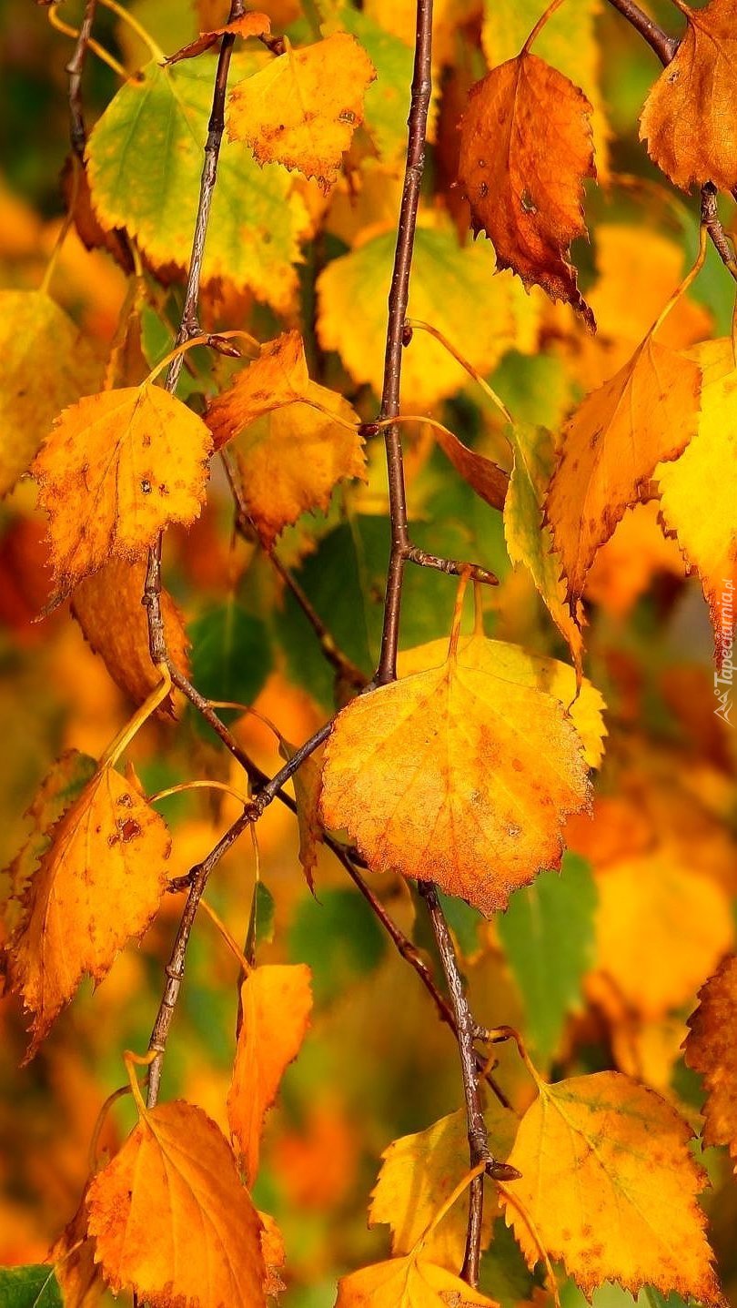 Edytor tapety: Jesienne liście na gałązce brzozy
