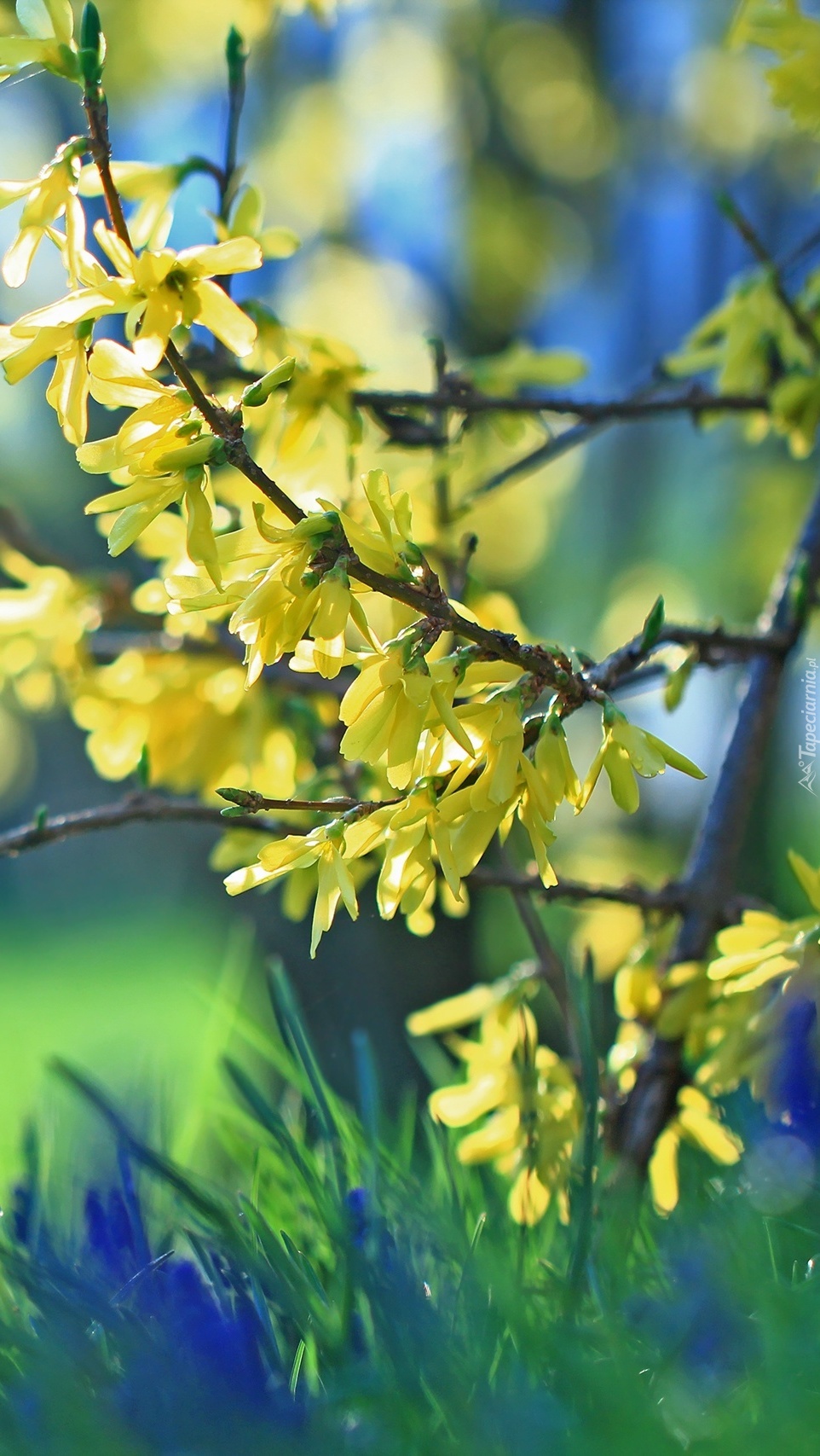 Edytor tapety: Gałązki żółtym kwieciem obsypane