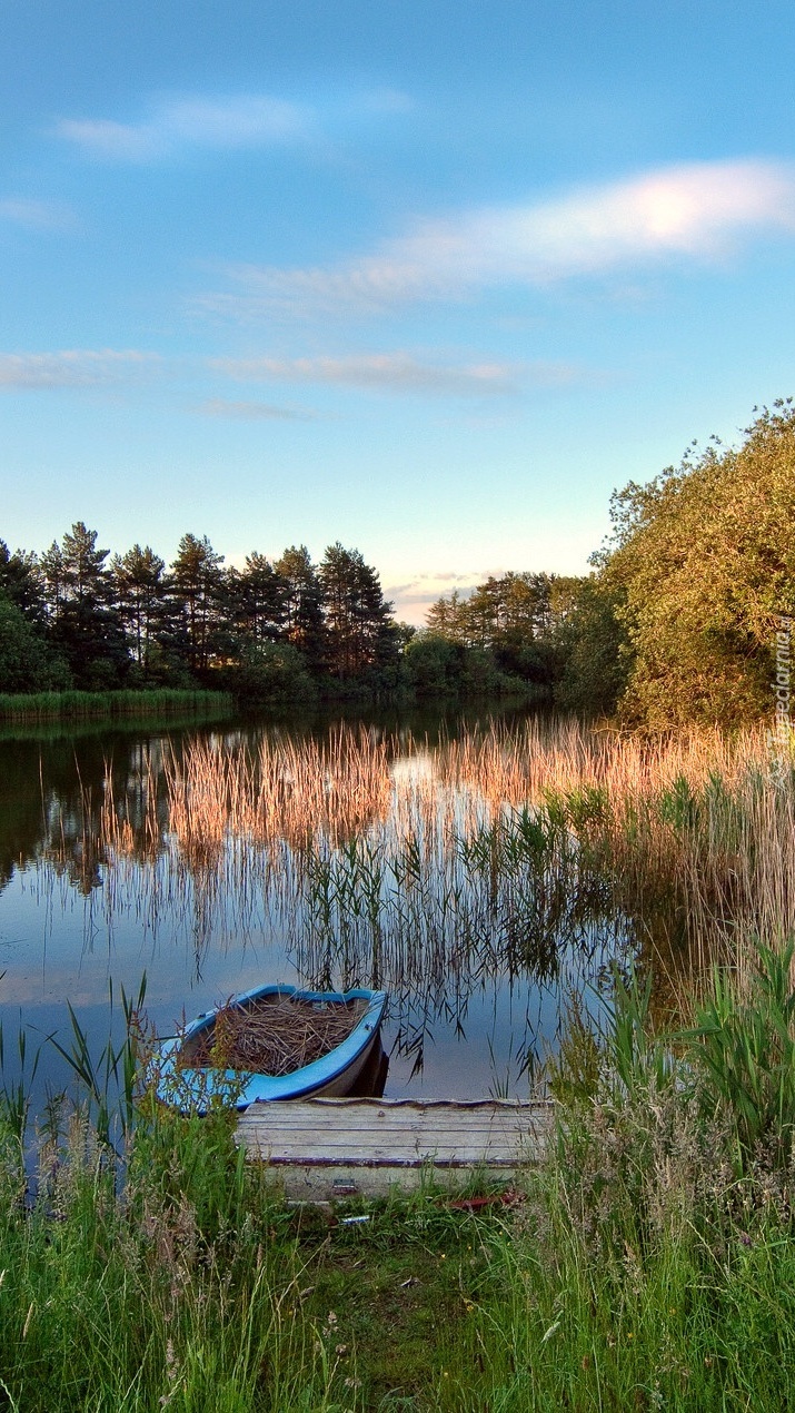 Edytor tapety: Łódka w szuwarach jeziora