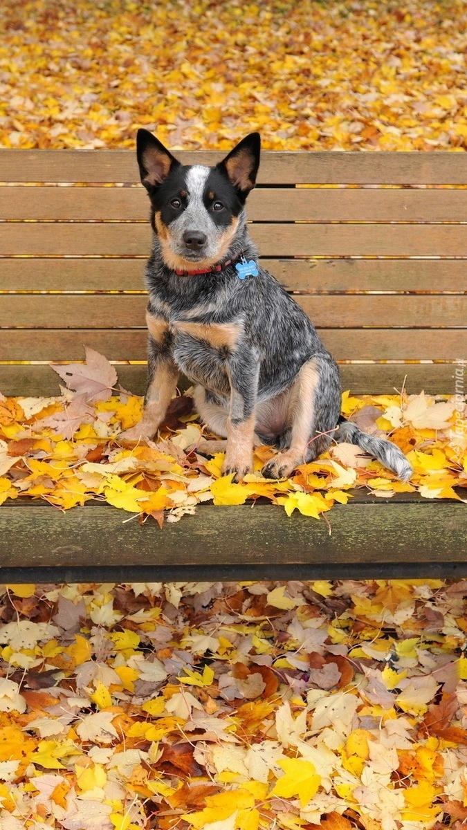Edytor tapety: Australian cattle dog na ławce