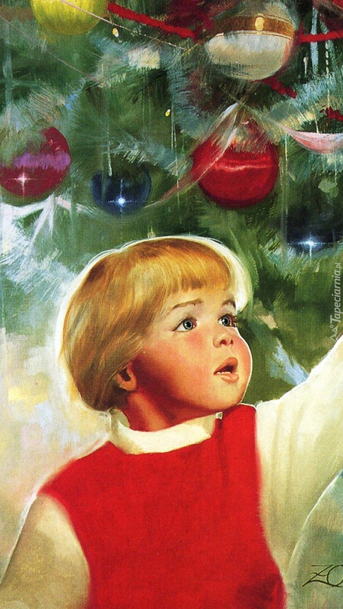 Edytor tapety: Dziecko szuka swojej bombki na choince